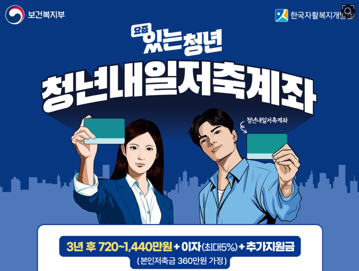 3️⃣ ✨ 청년들의 꿈! 청년내일저축계좌 (연령/소득에 따라 지원금 차이)